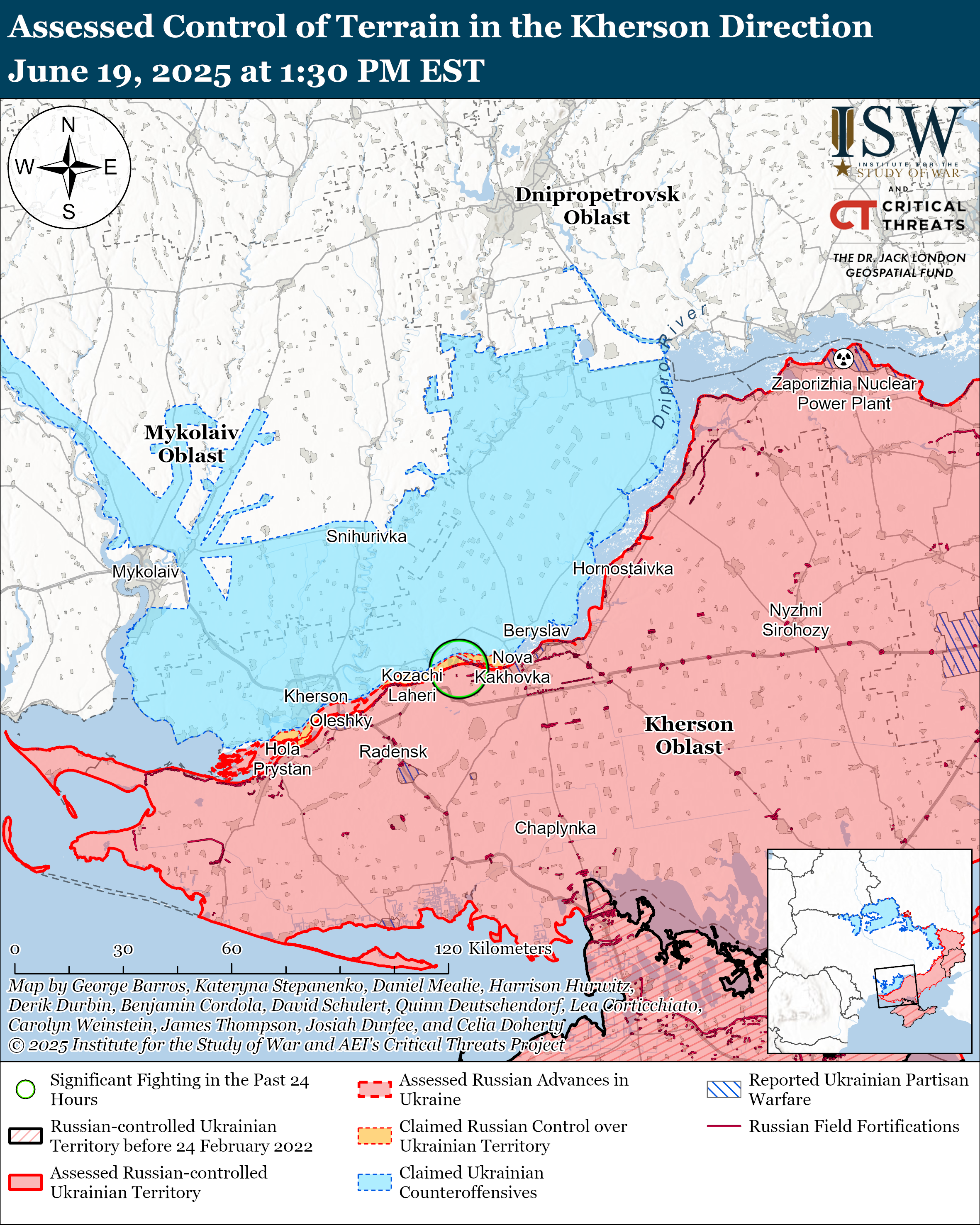 [61] https://t.me/ua_marines_36brigade/3187; https://x.com/GirkinGirkin/status/1935665847743205737; https://t.me/ShrikeNews/23382; https://understandingwar.org/backgrounder/russian-offensive-campaign-assessment-june-18-2025