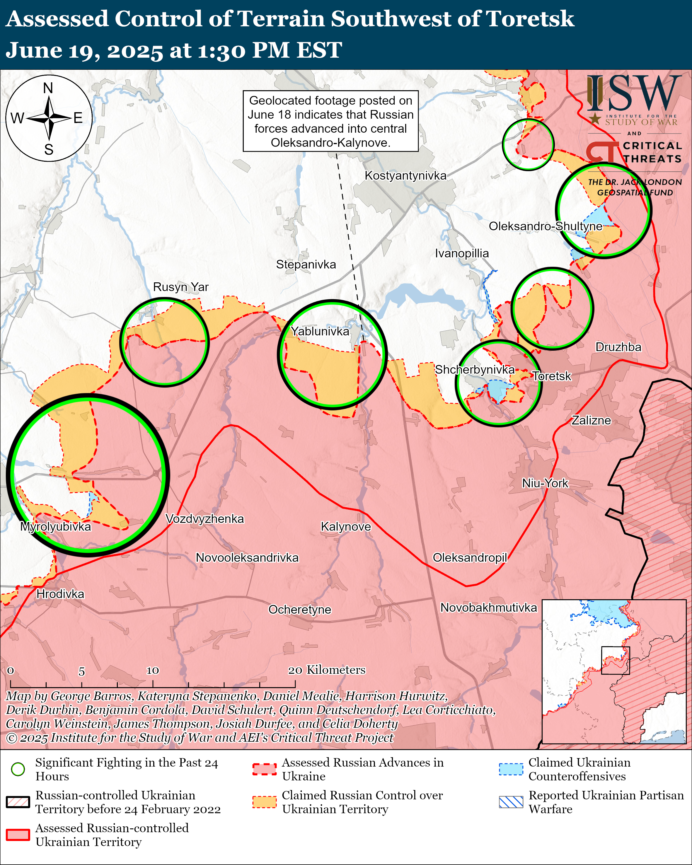 Note: The data cut-off for this product was 12 pm ET on June 19. ISW will cover subsequent reports in the June 20 Russian Offensive Campaign Assessment.